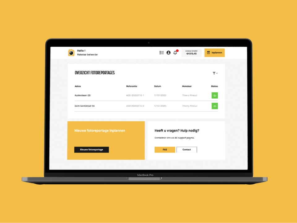 In het fotopaneel kan je nieuwe fotoreportages boeken, lopende aanvragen beheren en afgewerkte foto’s downloaden. Je ontvangt handige meldingen die je steeds op de hoogte houden.